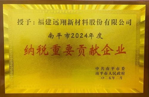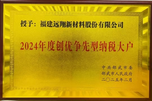 遠(yuǎn)翔新材獲“南平市2024年納稅重要貢獻(xiàn)企業(yè)”、“2024年度創(chuàng)優(yōu)爭(zhēng)先型納稅大戶”榮譽(yù)